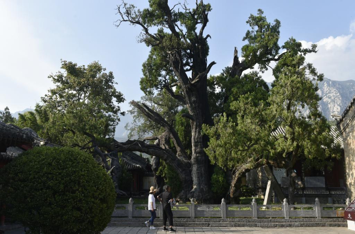 8月7日,游人在嵩阳书院内参观。
