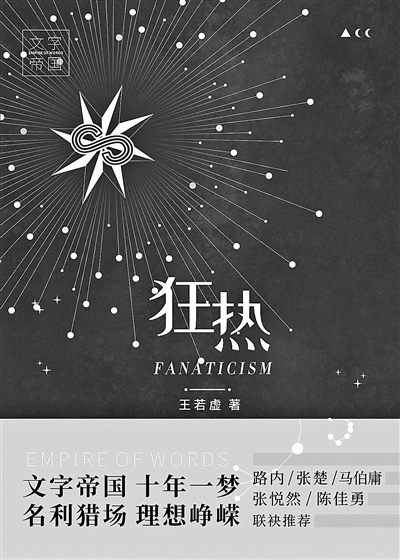 2010年10月发表于《萌芽》杂志的《文字帝国·微生》,是王若虚“文字帝国”的首秀。这篇小说颇具少年维特之烦恼色彩,讲述了文学青年的青春躁动与命运沉浮。随后发表的系列小说《疯女王》《小宇宙》《同小姐》,到《没有书的图书馆》《光环》《腰封无用》等具有一致性和连贯性——它们全部聚焦文学青年的成长史,描写他们在面对选择时的焦虑与茫然、冲动和欲望,借以展现21世纪初的“青春”的文学史。《狂热》作为这一系列最新的长篇小说,将眼光投向聚光灯外的无名作家和小众作家,以后青春式的视角重新回到21世纪初的文学现场。新作中,王若虚采用了一种更加贴近当下与现实的维度重新审视当时的文学创作,展示时代变化中理想与欲望的纠葛,缅怀属于“80后”一代的特殊记忆。
