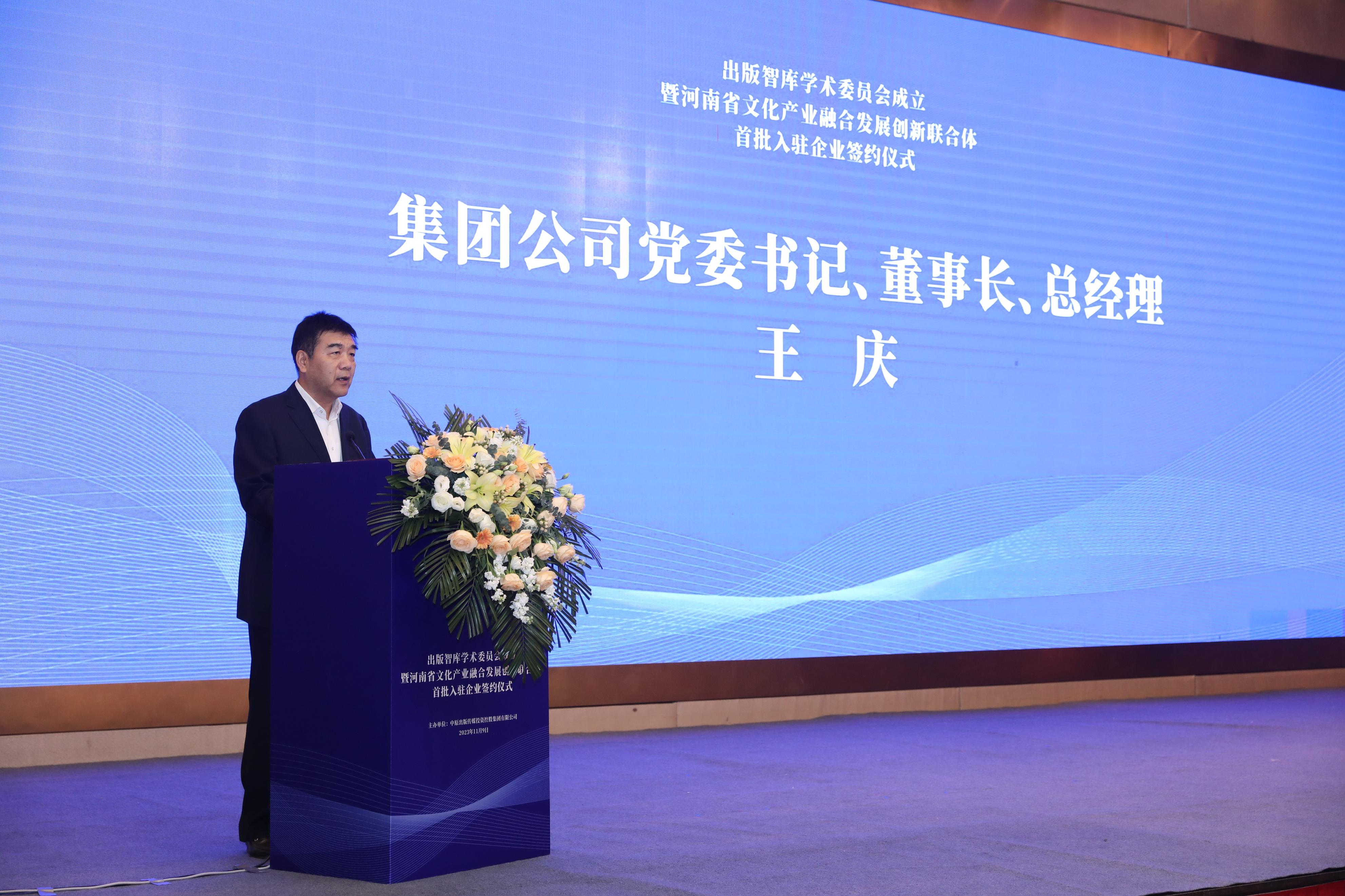 11月9日,出版智库学术委员会成立大会暨河南省文化产业融合发展创新联合体首批入驻企业签约仪式在郑州举行。中国出版协会第七届理事会理事长邬书林,江苏凤凰出版传媒股份有限公司原董事、总经理佘江涛,中原出版传媒集团党委书记、董事长、总经理王庆等领导和嘉宾出席仪式。