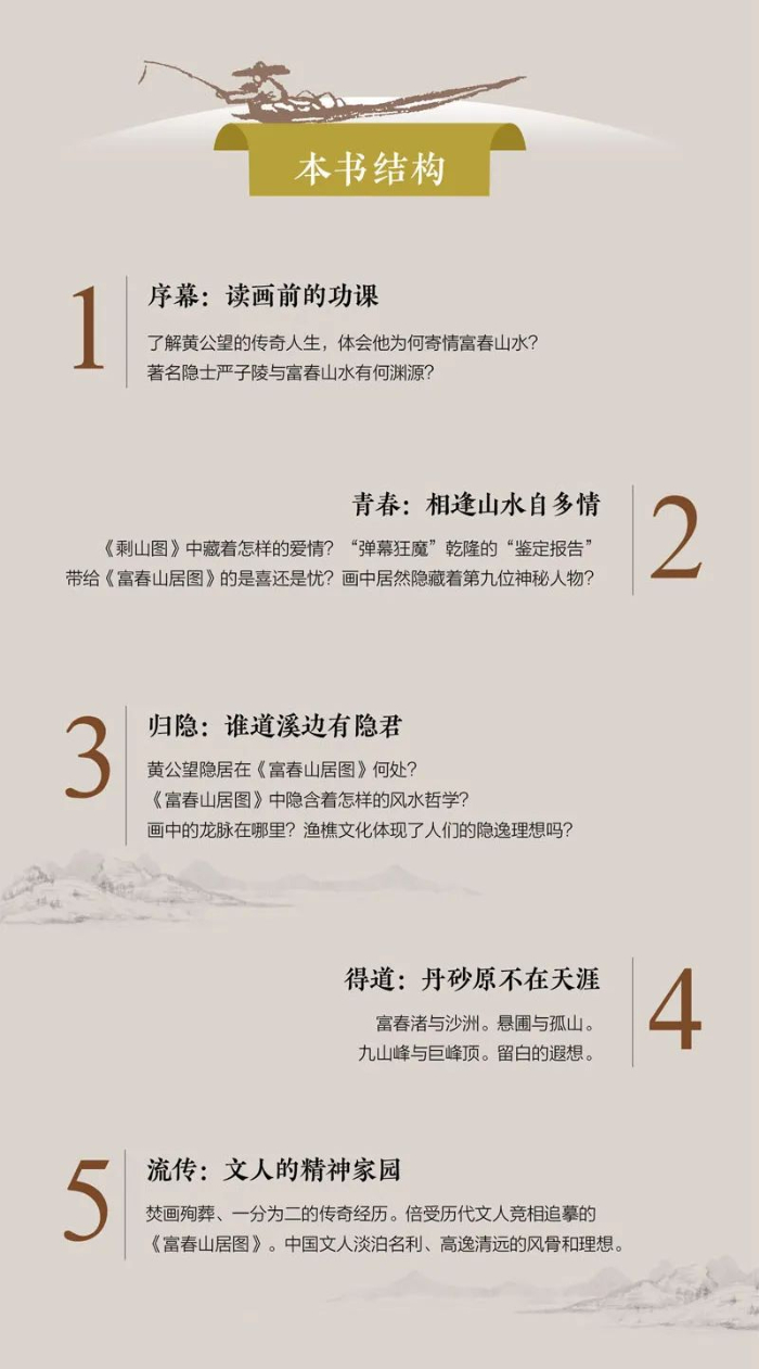 黄公望在《写山水诀》中曰 :“或于好景处见树有怪异,便当模写记之……”这位神秘人物正好呼应了这段叙述。如果我们的推论成立的话,这第九位人物或许就是中国古代绘画里隐藏得最深的画家自画像了。(节选自《富春山居图:画中之兰亭》第二章“青春:相逢山水自多情”)