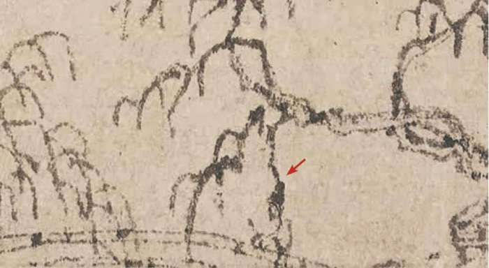 第三,桥桩部分被彻底烧毁。这是因为当年吴洪裕火殉画卷时,画作最下面一部分可能烧毁了,这个桥桩在重新装裱时估计不得不被裁剪掉了。