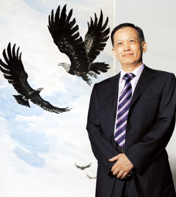 《中华腾飞图》画高3.65米,宽1.45米。这幅画将神鹰、乌云、长空、万里江山融为一体。君寿表示,这幅画是自己绘画生涯中最满意的一张。“背景是乌云而不是晴空,是这幅画的灵魂,这是以物喻人,平淡的天空不会给人以力量和激情。鹰就是要在暴风雨来的时候,不畏艰险,搏击长空。九万里风鹏正举,天地间任吾翱翔。”他说。
