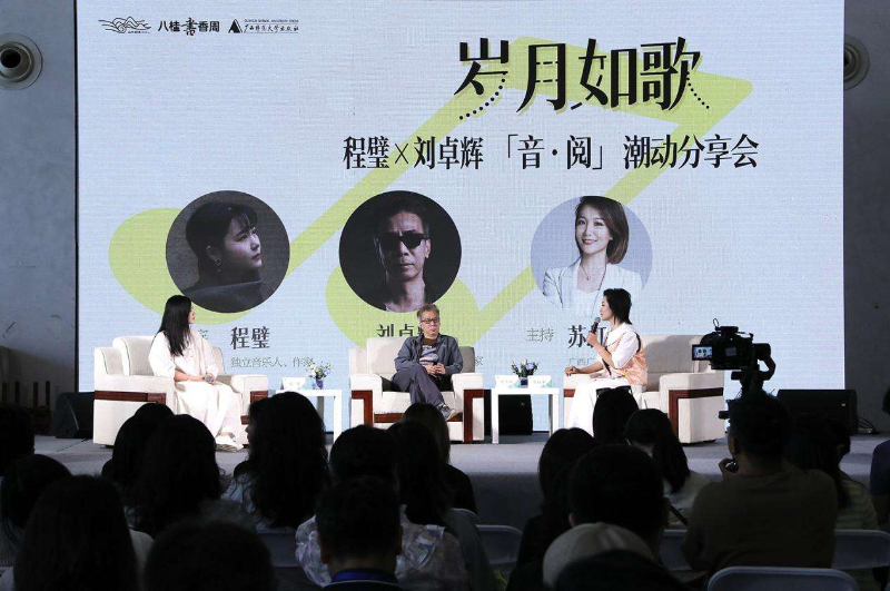 4月18日,2025年八桂书香周系列文化活动“岁月如歌——程璧×刘卓辉‘音・阅’潮动分享会”在南宁举行。香港知名填词人刘卓辉与独立音乐人、词曲创作者程璧,以“岁月如歌”为引,为读者带来了一场横跨港乐黄金时代与独立音乐浪潮的深度对话。