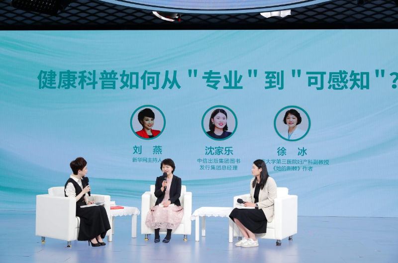 中信出版集团图书发行集团总经理沈家乐和知名妇科专家、北京大学第三医院妇产科副教授徐冰围绕“健康科普如何从‘专业’到‘可感知’?”主题进行对话,并推荐图书《她的荆棘:从痛经到子宫内膜异位症》。徐冰介绍这本书是在患者的鼓励下历时4年创作完成,是对一种困扰现代女性的高发病——子宫内膜异位症进行疾病科普。书中不仅介绍了身体构造相关知识,还加入了很多故事化的病例案例,帮助读者朋友们早预防、早干预。沈家乐指出,中信在健康科普方面出了很多类似《她的荆棘》这样的书,都是在看到读者有相关的需求之后,从专业领域去选择非常顶尖的专家,再用一个降维的方式来进行写作。这是医学科普的一个意义所在。