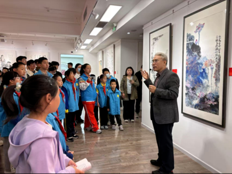 仪式开始前,“言恭达助学行动”首届全国诗书画展览策展人李建春、获奖代表老师王文涛,分别围绕“以美育传承三美合璧”“从教育践行文化担当”,采取互动式方法,结合展厅作品,讲述了言恭达倡导美育从校院开始的当代意义以及“诗书画三美合璧”的方法、技巧和途径。