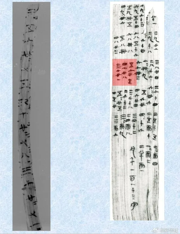 这批不起眼的木片,成为后人了解秦人生活实况的信息宝库。其中一枚《九九表》成为先秦时期乘法口诀的实证,“二半而一”的文字记载更是证明当时已有小数运算,在楚简《九九术》的基础上又有创新发展。
