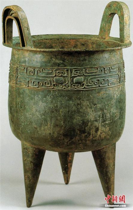 盘龙城遗址出土的青铜大圆鼎。盘龙城遗址博物院供图