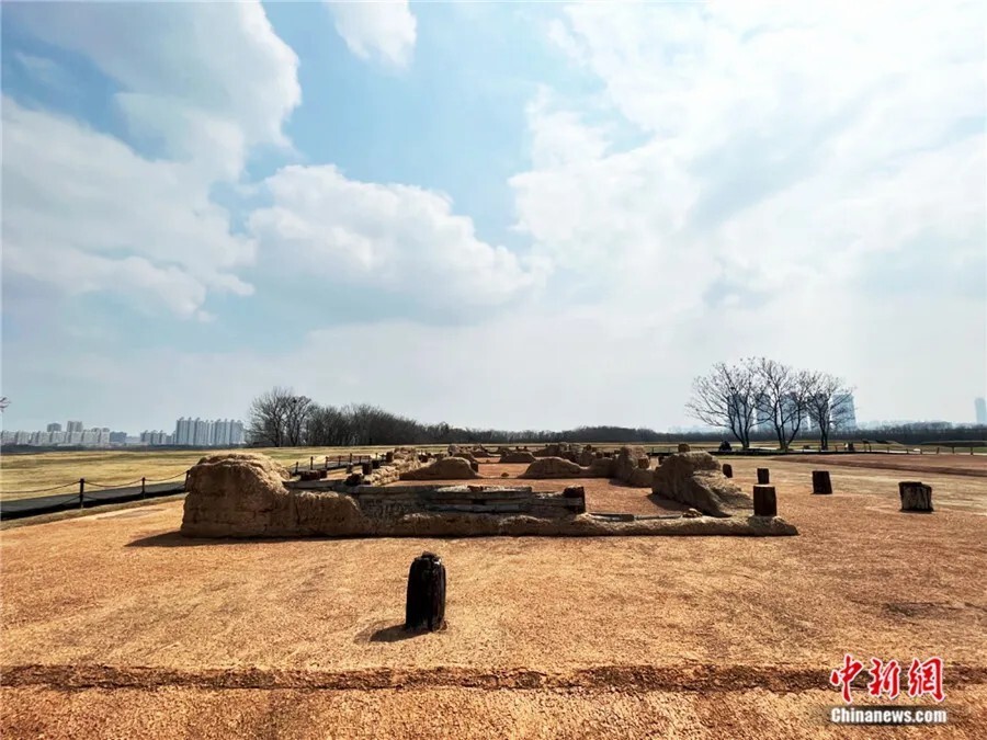 盘龙城遗址宫殿基址复原展示。张芹 摄