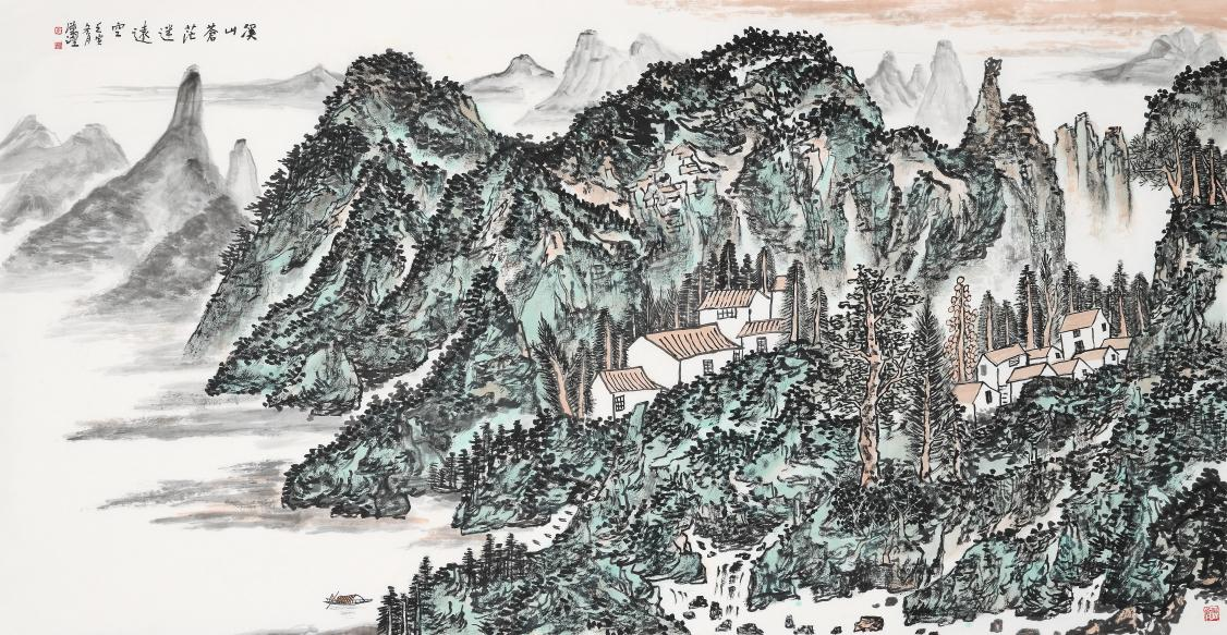 在马汉跃的作品中,画家融主观情感、性灵于客观的景物之中,看似平淡又可见奇险,山峦重叠,开合有序,结构严谨,沉稳又富于变化,设色古雅沉着,营造出一种纵横恣肆、气韵高古的意境。他以今人之心写古人之意,能达到这种境界实属难得。