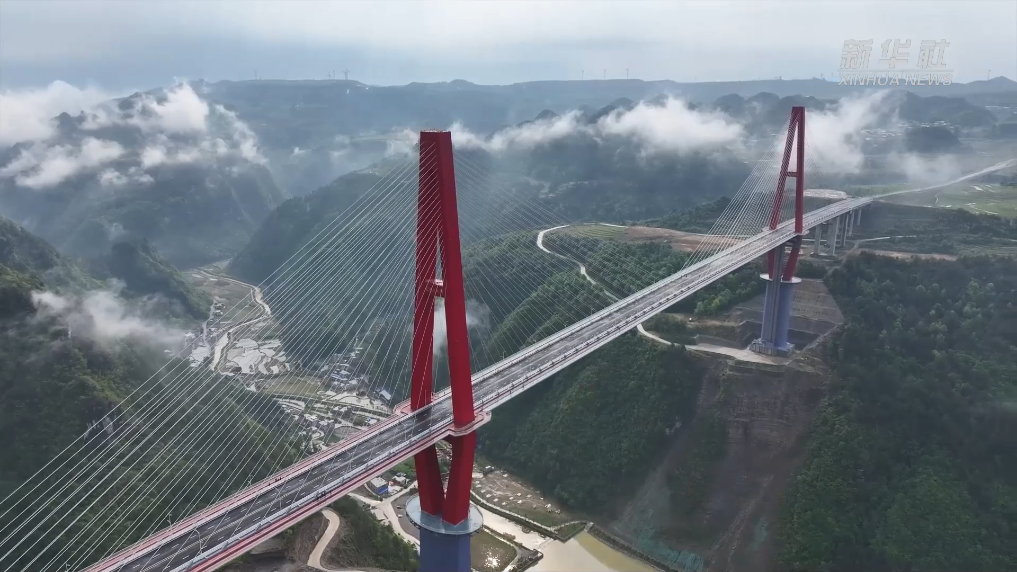 4月27日,贵州龙里河大桥正式通车。这座大桥位于贵州省龙里县,全长1260米,横跨朵花大峡谷,塔顶距谷底约400米,桥面距谷底约280米。