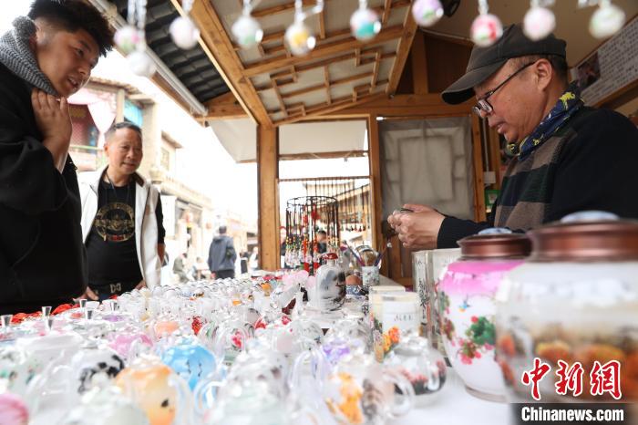 市民观看艾福多创作内画鼻烟壶。中新网记者 于晶 摄