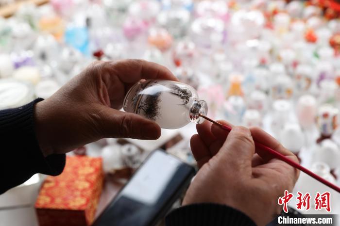 艾福多正在创作内画鼻烟壶。中新网记者 于晶 摄