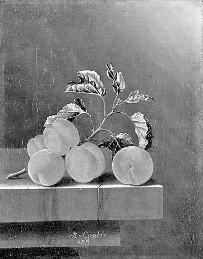 荷兰画家阿德里安·柯尔特作品《五个杏子的静物》