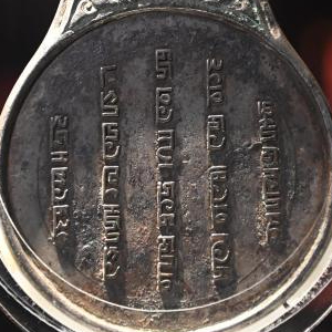 收藏于甘肃省博物馆的八思巴文银字符牌为铁铅等合金质地,通高18厘米,径长11.7厘米,重247克。文字为银质,两面镶嵌凸起的元朝官方文字八思巴文正体字五行,一正一反。这面银字圆牌虎符,是诸王公为军情急务遣使者,或朝廷军政急务遣使所用的信物。