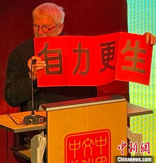 比利时布鲁塞尔皇家美术学院前院长米歇尔·波德松在对话会上“图文并茂”,回忆自己的中国艺术之旅。中新网记者 德永健 摄