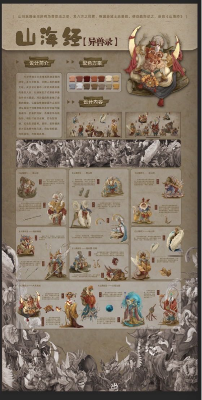此次设计将不一样的异兽形象传递给大众,以插画的方式展现异兽的特点与美感,对异兽的形象做了全新的描绘,在延续传统绘画方式的同时又展现了创意思维,使其符合现代绘画潮流。