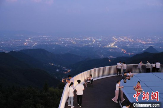 8月8日,市民游客正在莲花观景台游玩。曹丹 摄