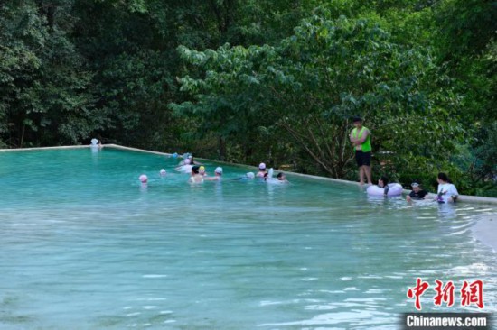8月8日,市民游客正在桃源洞内拍照留念。曹丹 摄