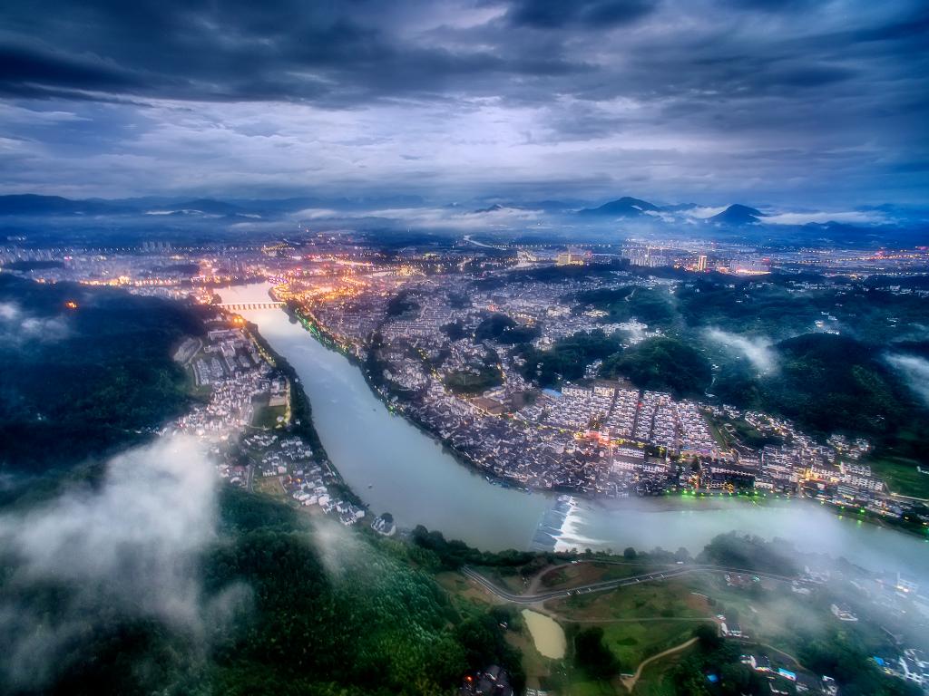 徽州古城景色(无人机照片)。(歙县县委宣传部供图)