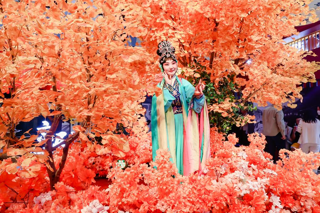 今年“大戏看北京——京剧文化之旅特展”与中秋相遇。月下的银杏与桂花相互交错,在如梦如幻的氛围中,戏曲演员展现梅派经典剧目《贵妃醉酒》《嫦娥奔月》的身段之美。