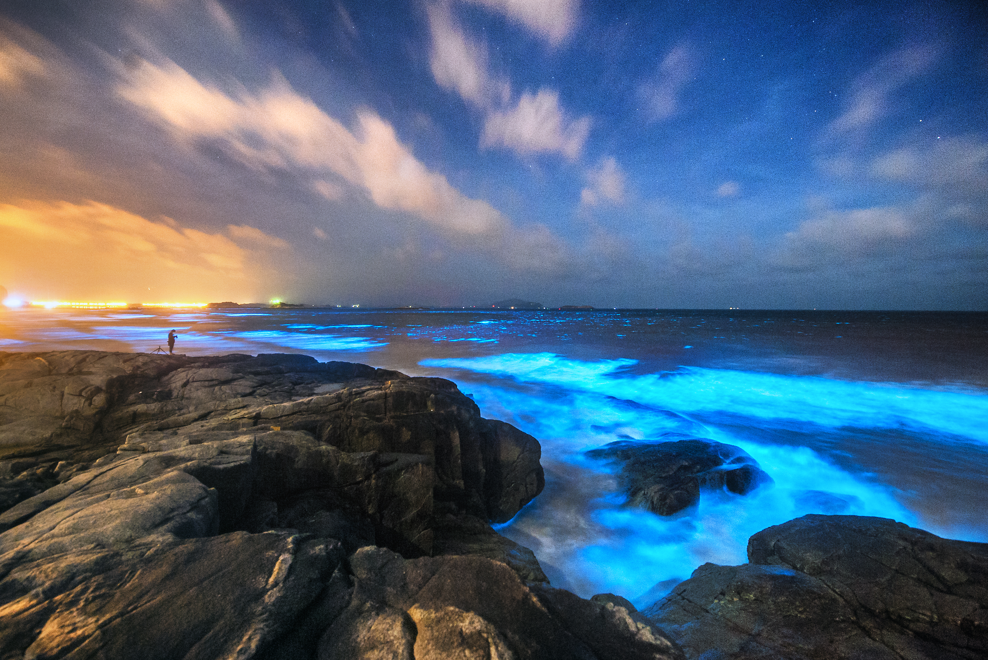 平潭拥有408公里的绵长海岸线,海岛风光绮丽。图为平潭“蓝眼泪”景观。(念望舒 摄)