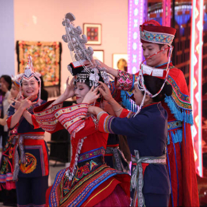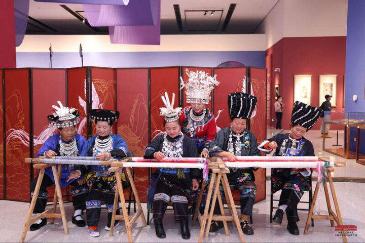 在开幕式上,贵州省级非遗苗绣代表性传承人龙禄颖,讲述了自己带领家乡妇女开展苗绣技能培训、实现家门口就业增收的事迹。来自浙江省台州市的中国工艺美术大师、省级非遗项目台绣代表性传承人林霞,在发言中强调应将传统刺绣与现代艺术融合,以创新理念的表现形式,开拓刺绣新的境界。