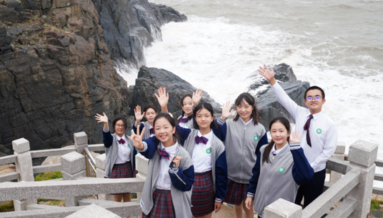 厦门六中博雅合唱团(阿卡贝拉团)学生在平潭仙人井景区打卡,感受海岛风情。新华网 肖和勇 摄