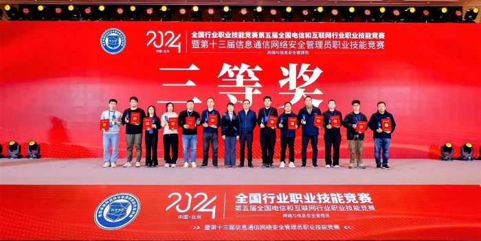 11月30日,“2024年全国行业职业技能竞赛——第五届全国电信和互联网行业职业技能竞赛(网络与信息安全管理员—算力网络与信创系统方向)暨2024年(第十三届)信息通信网络安全管理员职业技能竞赛”全国总决赛在北京开展。竞赛闭幕式在“2024年(第十三届)电信和互联网行业网络安全年会”主论坛上举行。