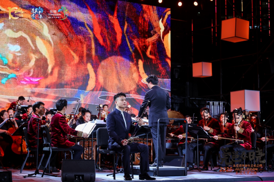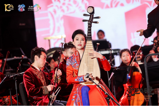 整场音乐会以气势恢宏的民族管弦乐《庆典序曲》拉开序幕,乐曲以欢快的唢呐和锣鼓的齐鸣,勾画出一幅节日庆典的热烈场面,带给人喜气洋洋、振奋人心、奋发进取的情感体验。随后,观众耳熟能详的《茉莉花》《梁祝》《鸿雁》《广东音乐四首》《红楼梦序曲》等经典曲目轮番上演。其中,东莞本土的优秀青年文艺人才、中国音乐金钟奖得主青年歌唱家陈思里作为特邀嘉宾,登台演唱了新疆民歌《阿拉木汗》和《达坂城的姑娘》。中央民族乐团团长、首席琵琶演奏家赵聪带来的一曲琵琶协奏曲《福吉天长》,传统琵琶的细腻与现代音乐的创新完美融合,更是将整场音乐会的气氛推向高潮。