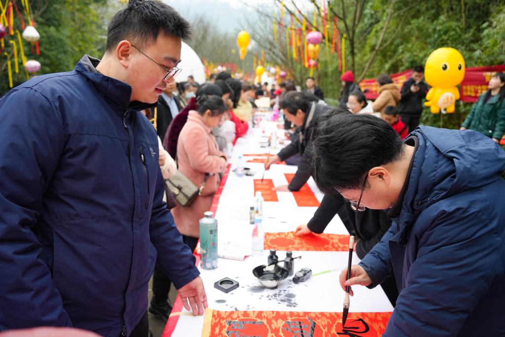 当天,非遗鲤鱼灯、舞龙舞狮、杂耍、川剧变脸吐火、状元巡街等10余项江津非遗项目接连上演,现场氛围热烈。新春楹联送福、非遗版画体验等活动,更是让八方游客流连忘返。