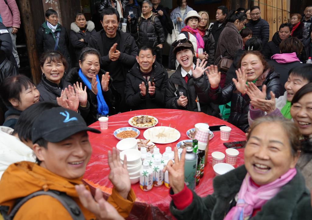 据介绍,当天古镇准备了460余桌特色宴,3万余名游客齐聚,逛老街、赏非遗、品美食、忆乡愁,沉浸式体验传统民俗盛宴的魅力。