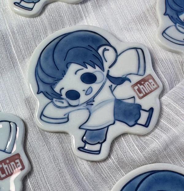 陶瓷遇上二次元,诞生了“谷子”(goods的音译,指由漫画、动画、游戏等作品衍生出来的周边产品——记者注)的一个新种类。在景德镇的市集,陶瓷冰箱贴、徽章以及异形瓷片,与二次元形象结合后成为热销商品。