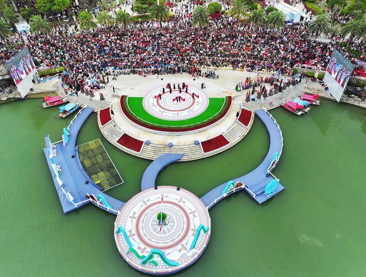 在南宁举行的“广西三月三·八桂嘉年华”开幕式现场(3月31日摄,无人机照片)。新华社记者 周华 摄