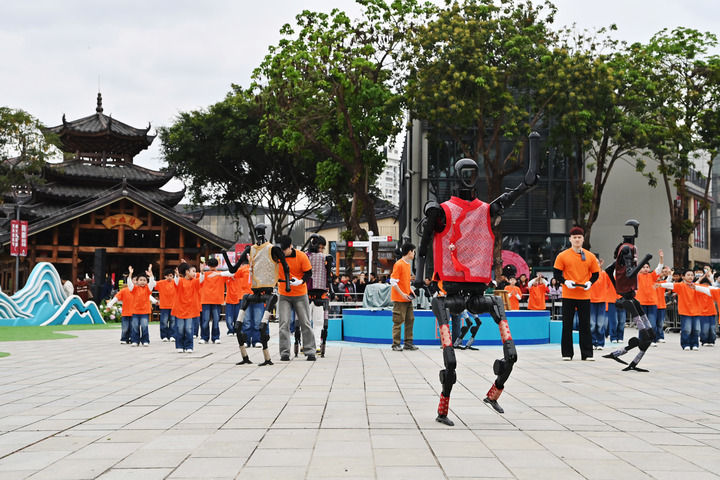 开幕式上,“科技范儿”成为关键词。除了机器人“刘三姐”,在蛇年春晚上手持花绢扭秧歌“出圈”的同款人形机器人也来到广西,脱下花棉袄,穿上壮锦马甲,和街舞少年们共舞。