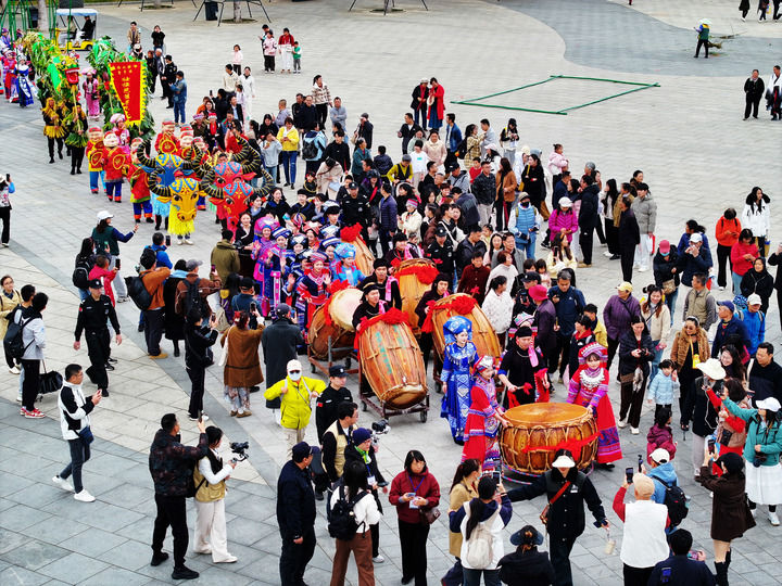 在百色近日启动的“和美红城 千姿百色”2025年三月三各族群众大联欢活动中,凌云瑶族长号、田东古壮拳、乐业壮族龙灯舞等各民族非遗表演纷纷亮相,各族群众和游客同唱一首歌、同跳一曲舞、同过一个节。