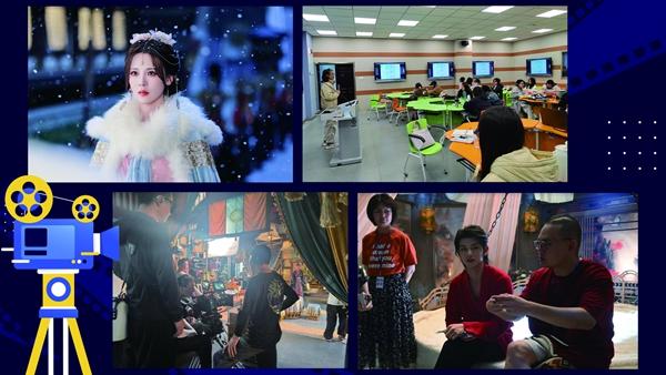 安徽工程大学设计学院师生片场工作照及剧组剧照。受访者供图