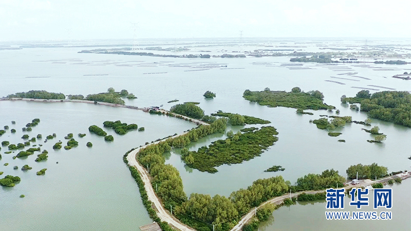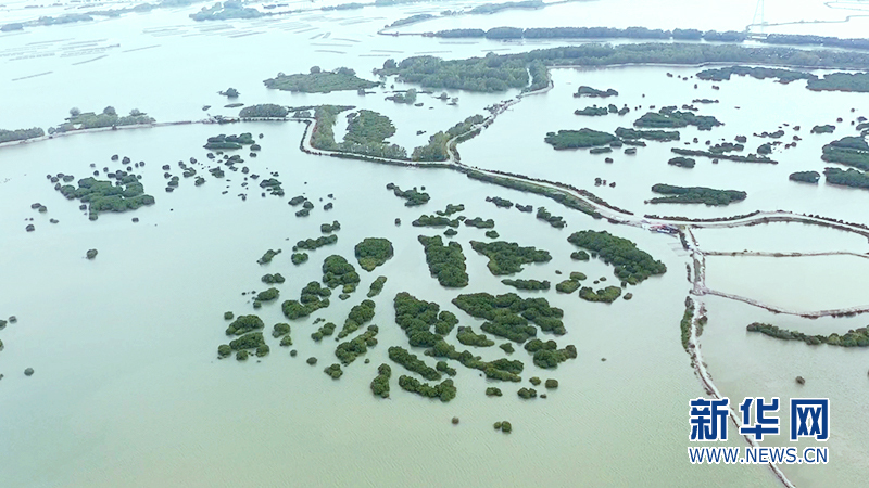 新华网广州5月30日电(李俊豪)在蔚蓝海洋与红褐陆地邂逅的潮间带上,伫立着密密匝匝、层层叠叠的红树林,初夏阳光映照下郁郁葱葱、苍劲有力,百鸟啼鸣萦绕于树林间,一幅自然和谐的生态图展现在眼前。