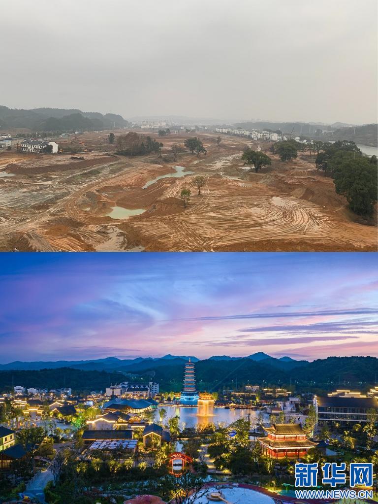 图为江西省铅山县葛仙村度假区建设前后对比图(拼版图片)。新华网发