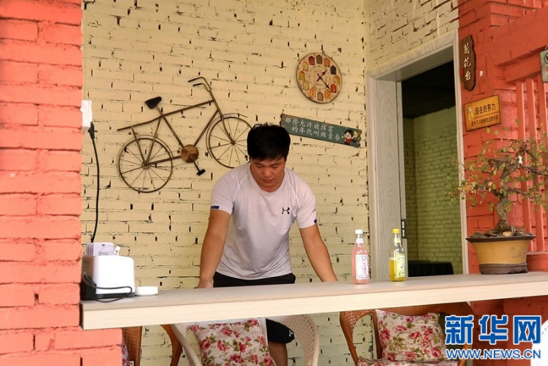 图为周悌君在民宿“荷巷小院”内整理卫生。新华网 王凯丰 摄