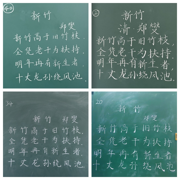 除此之外,老师们也尽情挥洒手中的粉笔,为“说好普通话,写好规范字”传递正能量,笔画或方或圆、或粗或细,或遒劲有力,或清秀隽美,或端庄大气,或飘逸洒脱。一笔一划、一勾一折,无不展现着教师严谨认真、积极进取的教育初心。