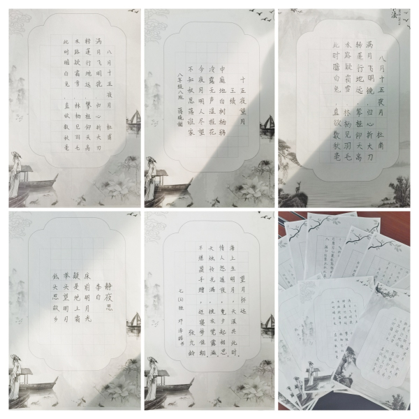 书写规范汉字,践行文明行为。在推广普通话宣传周期间,同学们认真书写中秋诗词和经典篇章,不仅让大家感受到经典诗词所蕴含的精神内涵和艺术魅力,更展现了学子对中华经典诗词和祖国语言文字的热爱。
