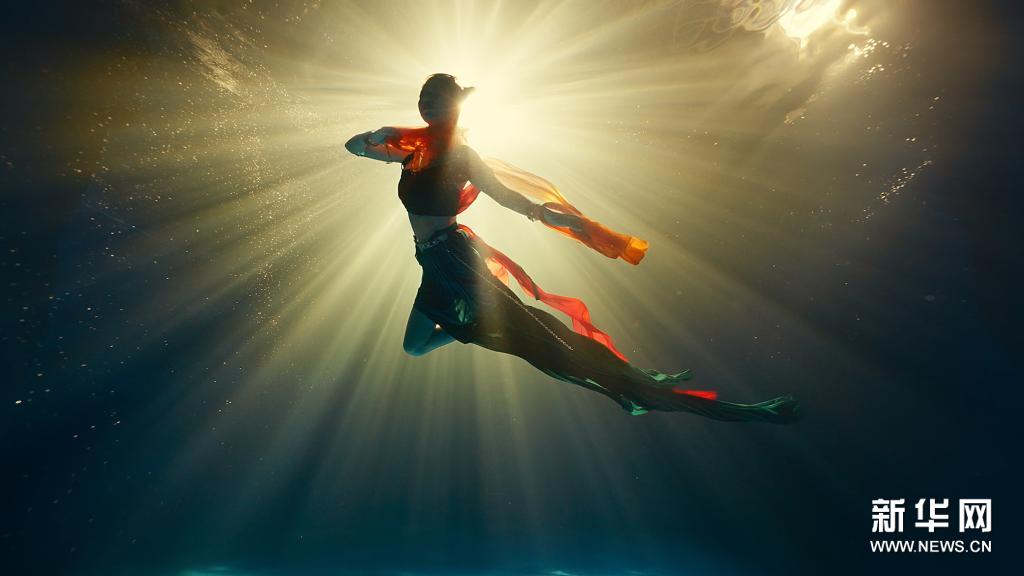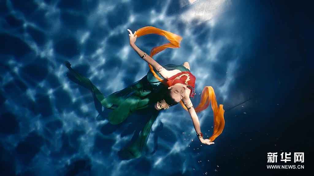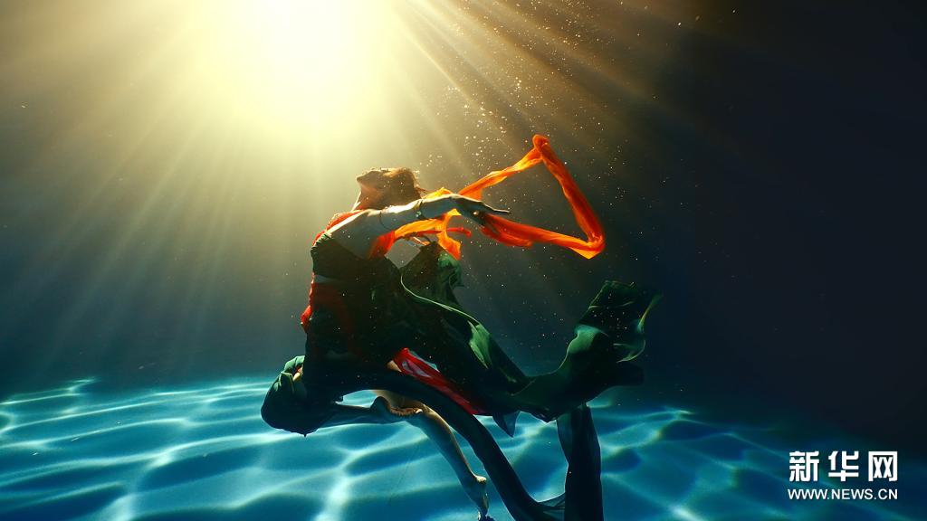 演员演绎水下飞天舞蹈《洛神水赋》(视频截图)。新华社发(河南广播电视台供图)