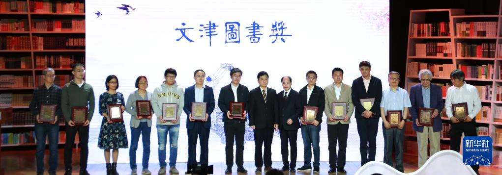 4月23日,获得第十七届文津图书奖的社科类图书作者及代表登台领奖。新华社记者 潘旭 摄