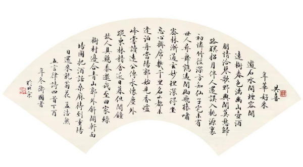 其小楷作品,临习王羲之《乐毅论》和钟绍京《灵飞经》等小楷名帖,具有晋唐风貌,法度严谨,结构紧中有松,舒展自如,气势贯通;其隶书作品,以魏碑用笔融入汉碑,方圆结合,结构富于变化,注重粗与细、浓与淡、重与轻的节奏感;其行书作品,60岁前,书承二王一脉,以帖学为主,深得启功书法之精髓,60岁后,引碑入帖,碑帖并重,将帖学书法的“潇洒飘逸、清新秀润”和碑学书法的“深穆苍茫,雄强豪健”完美地糅合在一起,注重锤炼书法线条刚柔相济的灵动质感,着力表现书法的气韵、神采和意趣,形成了圆深朴拙、古雅飘逸的书法风格。