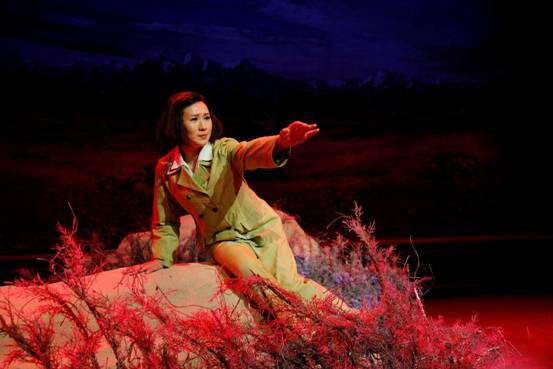 红柳啊红柳你会流泪吗?寒冬风冷冽,酷暑烈日扎。你似花又非花,沉默得像幅画,是谁拿画笔漠野绘上红云霞……,正像这首主题歌唱的那样,豫剧《戈壁母亲》呈现给观众一幅浓郁的军垦史诗画:辽阔的戈壁荒原上,一簇簇顽强生长的红柳,一个个地窝子、坎土曼,还有花儿一样的“戈壁母亲”,以及兵团战士们屯垦戍边、开荒造田。这一切,都把观众带回兵团成立初期那段激情燃烧的岁月。导演张平娴熟地调动着舞台,将传统戏曲程式完美地融入现代戏中,有文有武,使全剧张弛有度,节奏紧凑,给人以美的享受。