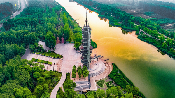 德州因水而名,因水而盛,漕运文化和治水文化是德州的代表性文化之一。天衢新区有着天然的生态基底,纵横二十六条河流水系,形成了“二十六水织碧网,一轴五湖润天衢”的总体水网布局。“水”赋予了德州生命,而天衢新区也致力于在“水”上做文章。从空中俯瞰,天衢新区以东风东路主干道为景观轴线,依托岔河、减河、马颊河三条河道,打造岔河商务休闲带、减河绿轴休闲带、马颊河健康休闲带,高标准打造沿河生态综合体,塑造体验型水体景观,形成走得进、看得见、能体验的亲水休闲空间。