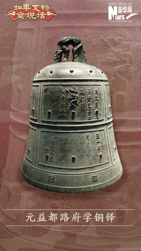 元益都路府学铜铎藏于青州博物馆。青州官学的设立最早为宋代的州学,朝廷应王曾之请,诏示全国各州,以青州为榜样,大力办学。延续至元代,青州作为益都路总管府治所所在,设立官学为益都路府学。据《太平御览》记载:“凡金为乐器有六,皆钟之类也,曰钟,曰镈,曰錞,曰镯,曰铙,曰铎。” “铎,大铃也。”铎舌有木质与金质之分,“文事奋木铎,武事奋金铎。”后因《论语》记载:“天下之无道也久矣,天将以夫子为木铎。”孔子作为师者,也常以木铎自比,认为自己就是上天派来教化民众的一个铃铛,木铎逐渐演变成了教师的代名词。益都路府学内置造铜铎,是尊孔尚贤、崇文重教的表现,也见证了青州官学教育的发展。铜铎的每一个细节都是精心设计的,云雷纹、龙纹寓意了对学生将来成长为国家栋梁之才的期望;铎,是时间的象征,时刻提醒学生要惜时、守时;铎,更是“尊师重教”这一中华优秀传统文化的表现,传承至今,意义深远。不知道大家是否注意过,现在有许多师范院校的校徽中都有“钟”的形象,这正是取自木铎象征“孔子”,象征“教师”的含义。