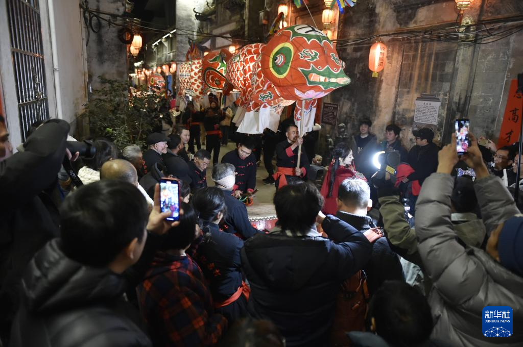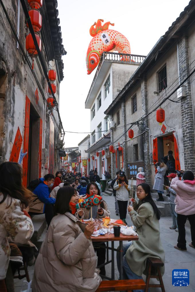 临近春节,安徽省黄山市歙县瞻淇村举行了数场鱼灯巡游活动,众多游客来到这里,感受这座千年古村的独特风景。