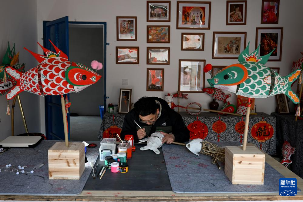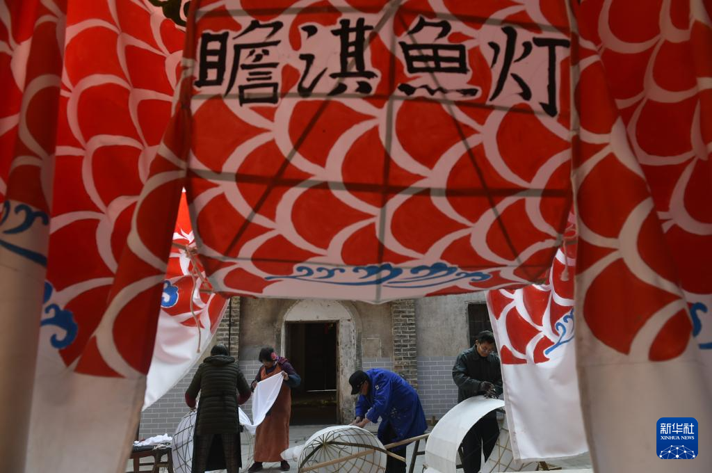 1月6日,在安徽省黄山市歙县北岸镇瞻淇村,村民在制作鱼灯。