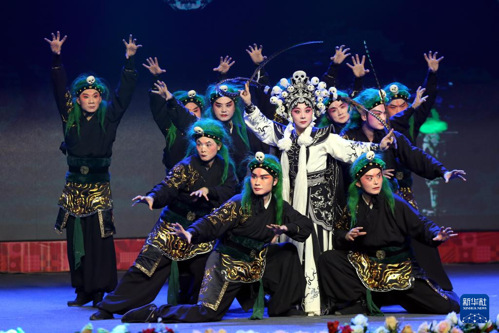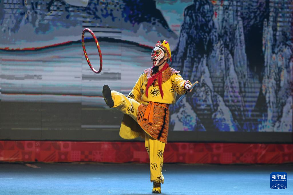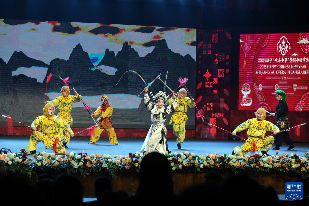 2025达卡“欢乐春节”婺剧专场演出21日在孟加拉国艺术院国家剧场举行,来自浙江婺剧艺术研究院的演员为观众带来《三打白骨精》等婺剧经典剧目。